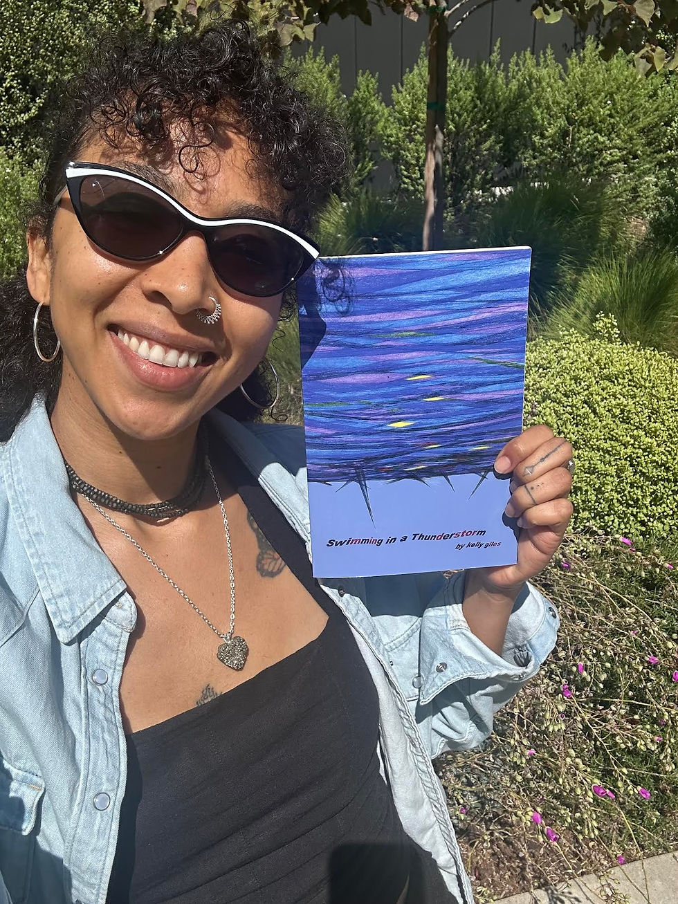 my shaman / poet friend @dayadharadd with her copy of my 1st poetry book Swimming in a Thunderstorm , as we did an artist exchange at an open mic at The Untold Story Bookstore & Cafe a week ago Friday